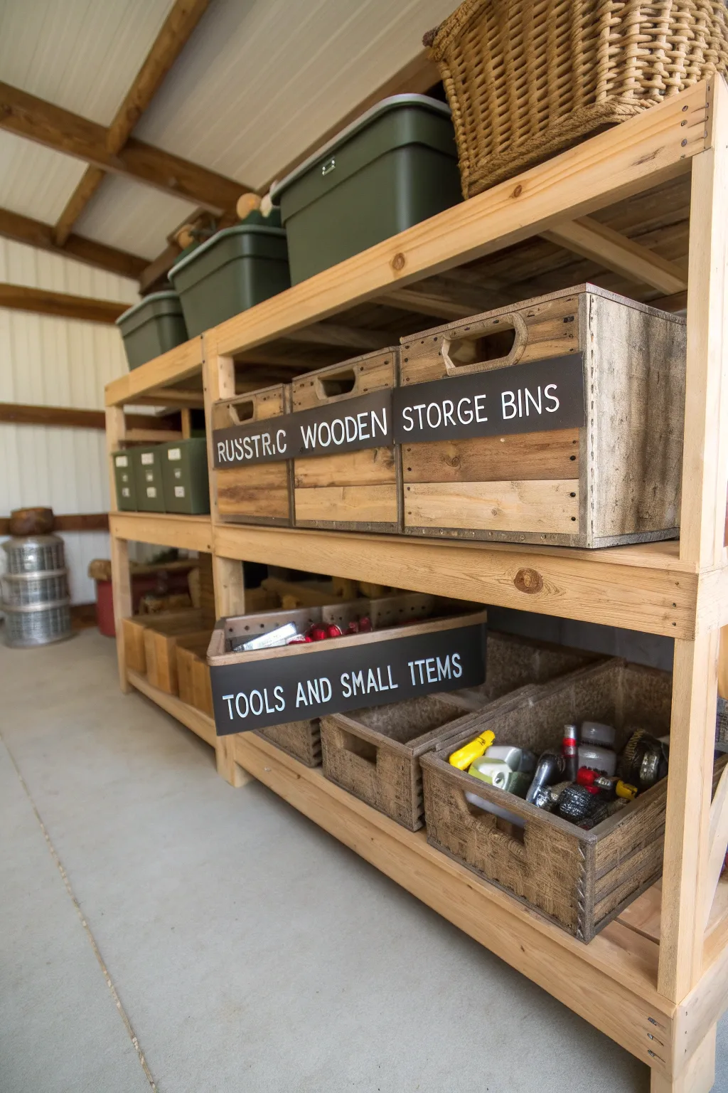 - Rustic Wooden Storage Bins: Add rustic charm while organizing your shed; perfect for tools and small items.