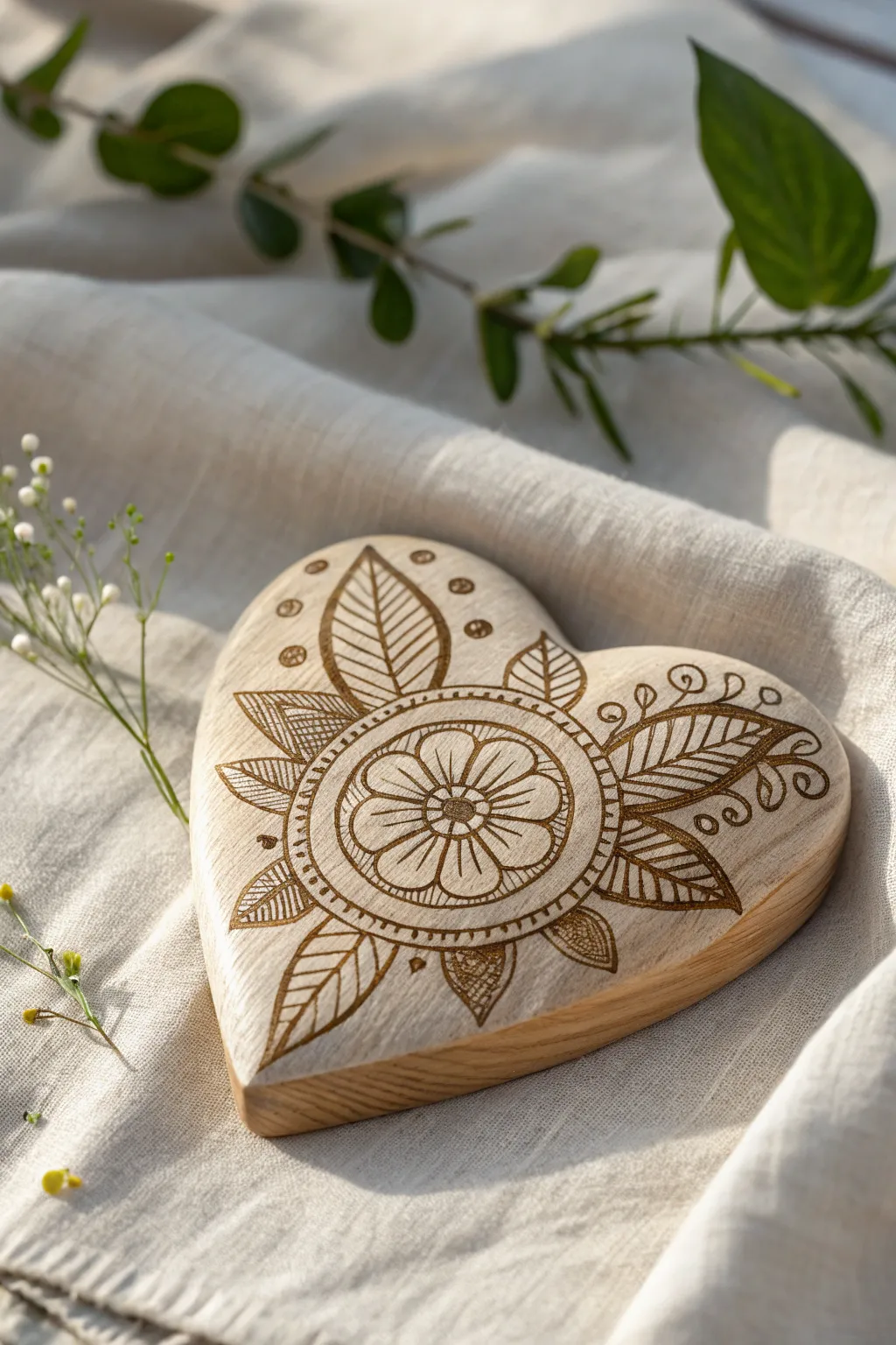 I adore painting wooden hearts with leaf motifs or mandala patterns. It’s a calming process that brings a touch of nature indoors.