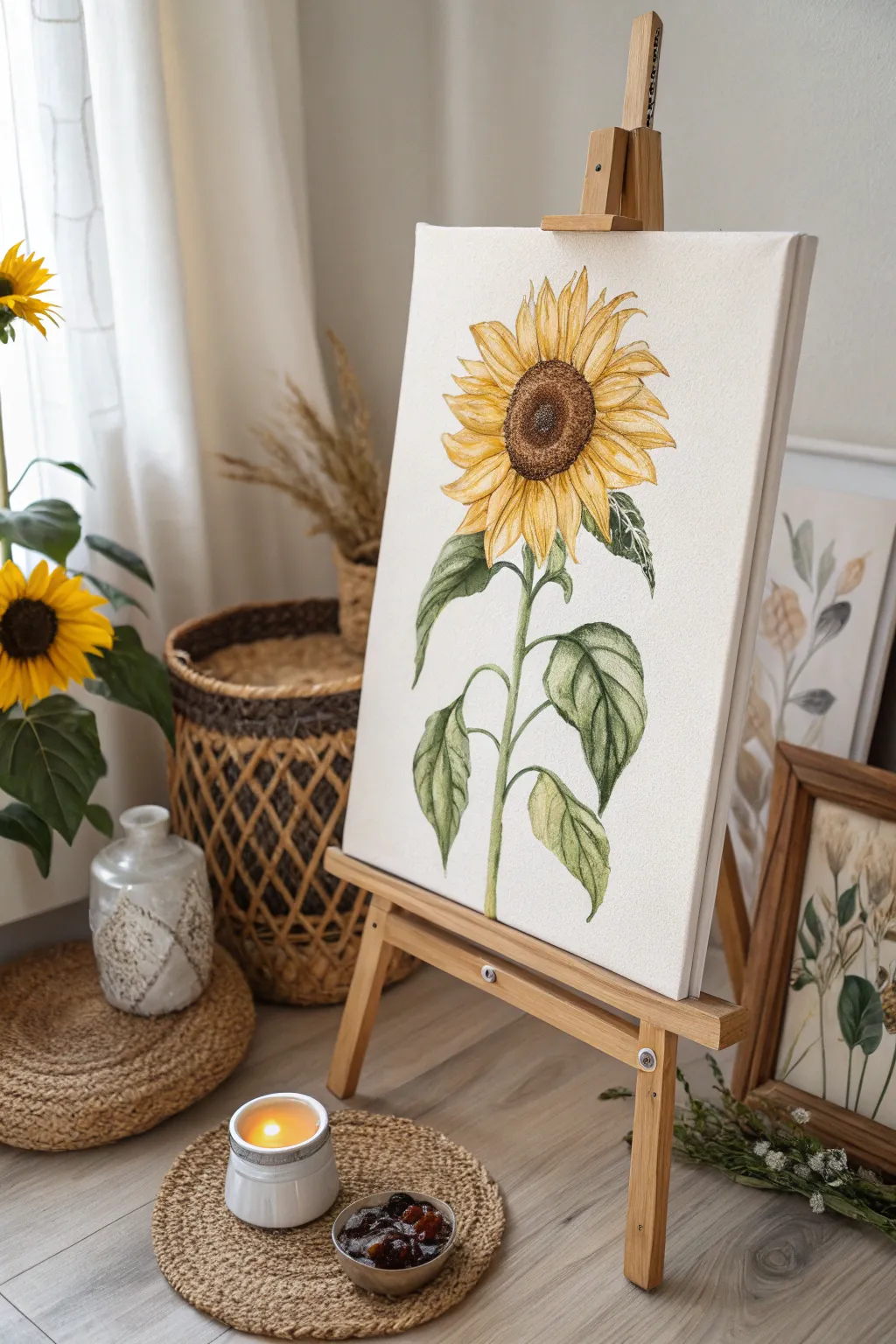 Bring the warmth of sunshine indoors with a stunning sunflower painting that radiates joy and simplicity.