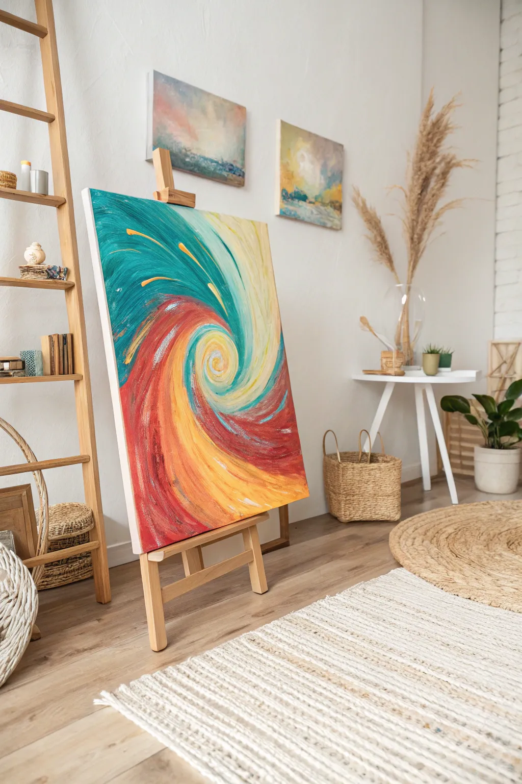 Go wild with a swirl of vibrant colors on your canvas. Trust me, letting your brush dance freely is liberating and makes for a standout piece in any room.