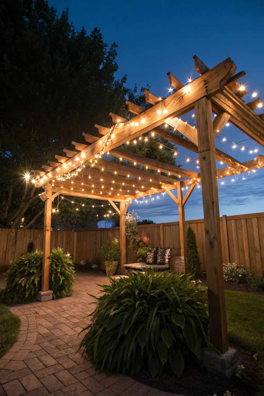 Transform your pergola into a magical retreat with the warm glow of string lights.