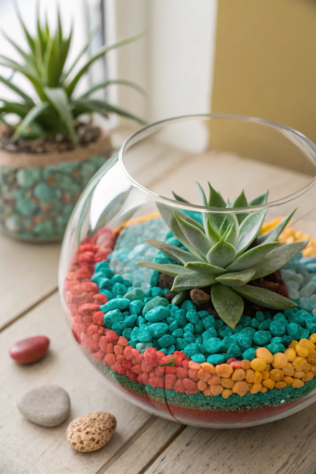 - Bright Rainbow Garden Stones: Create a stunning look with bright rainbow garden stones, ideal for terrarium bases.
