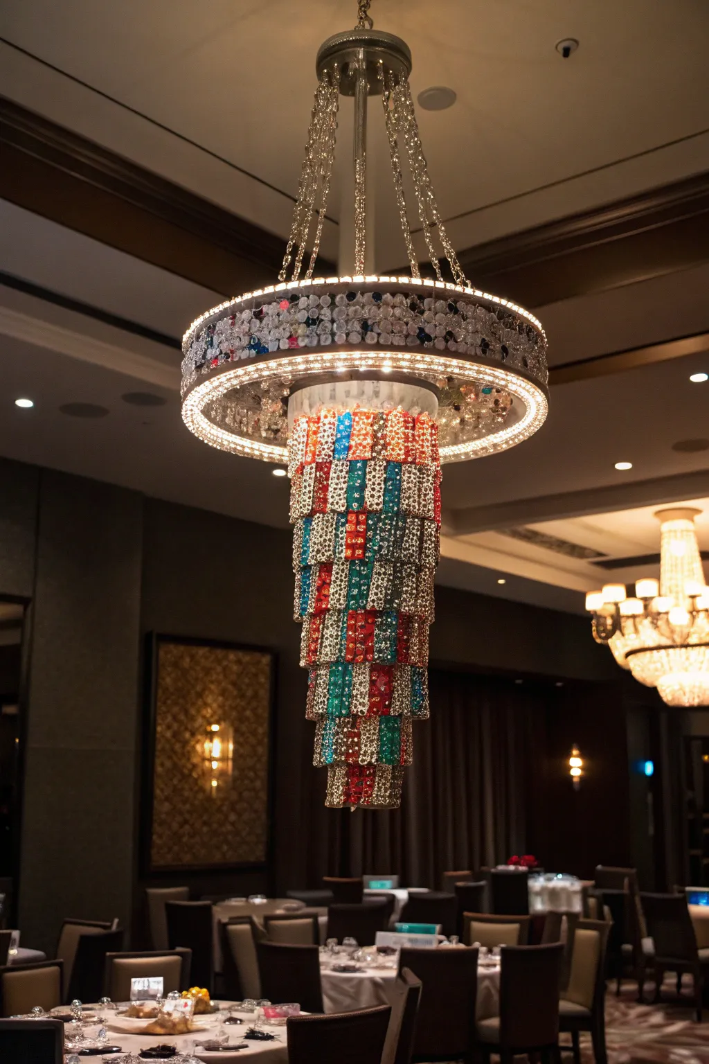 Design an eye-catching poker chip chandelier that dazzles with light and color. It’s a conversation starter in my dining room, catching everyone’s attention.