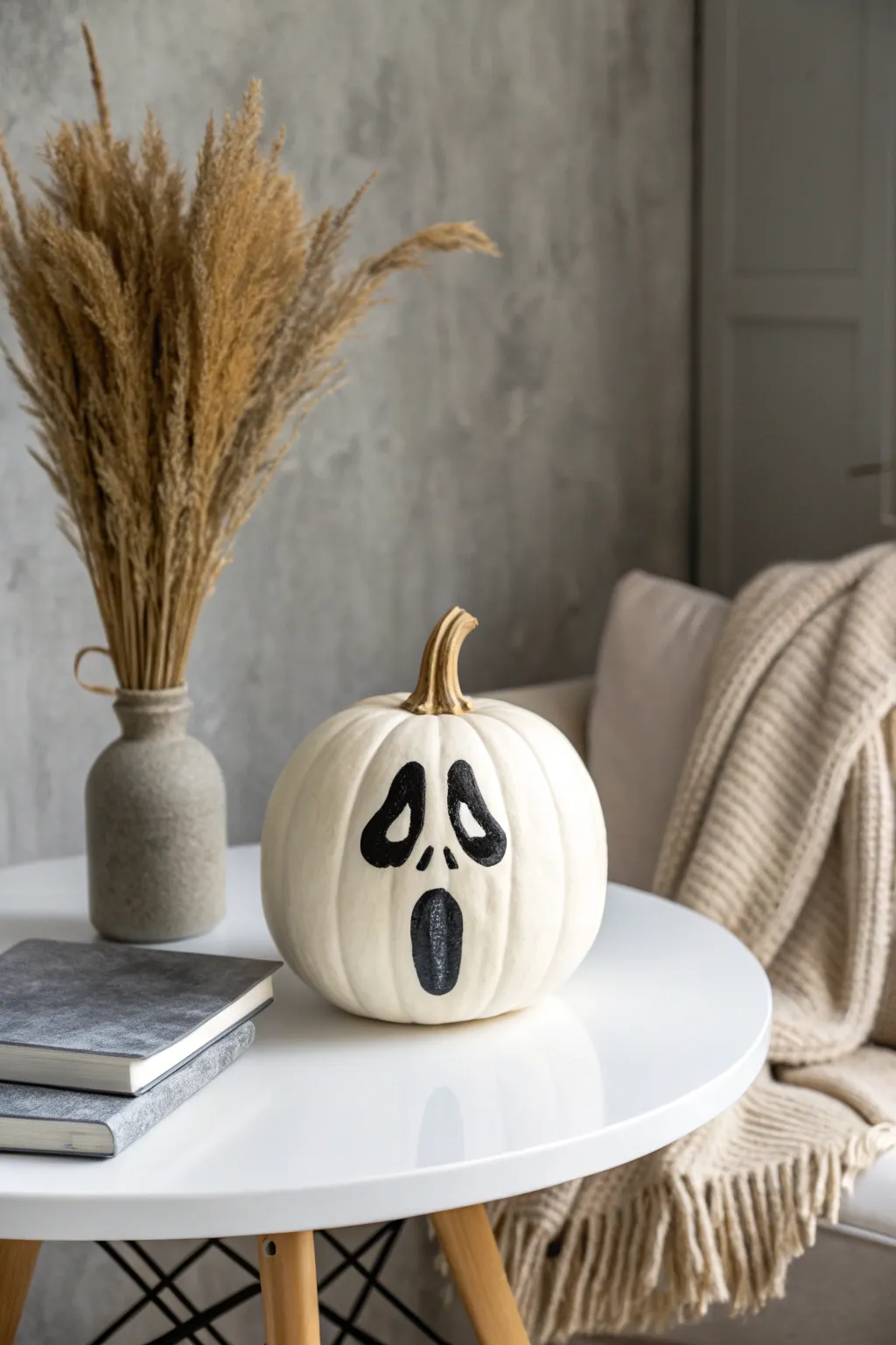 Grab a few mini pumpkins and paint tiny Scream masks on them. These little guys are perfect for scattering around your home, creating a spooky vibe without much effort.