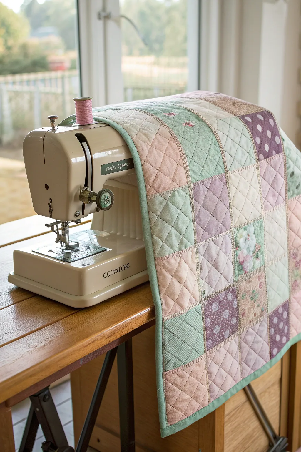 Why not bring a touch of quilted charm to your sewing room with a quilted design cover? I once made one with leftover fabric scraps, and it instantly made my space cozier.