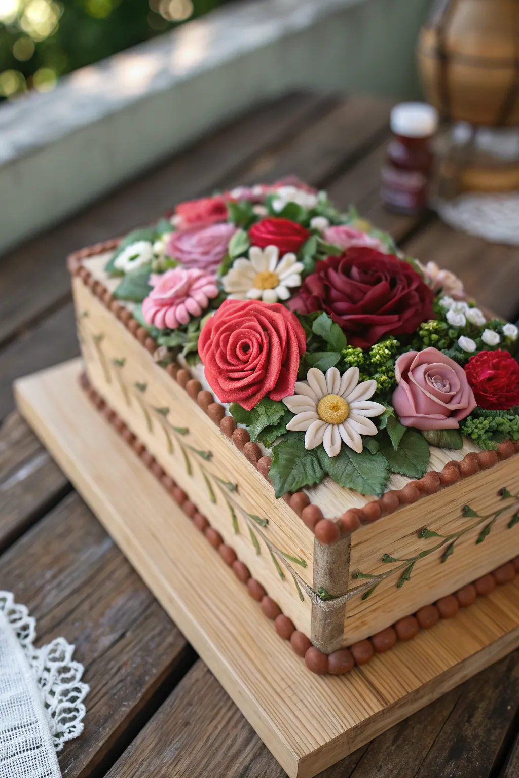 Bring the beauty of a garden into your home with a floral slab box. I once adorned a simple box with delicate clay flowers, creating a piece that blossoms all year round.