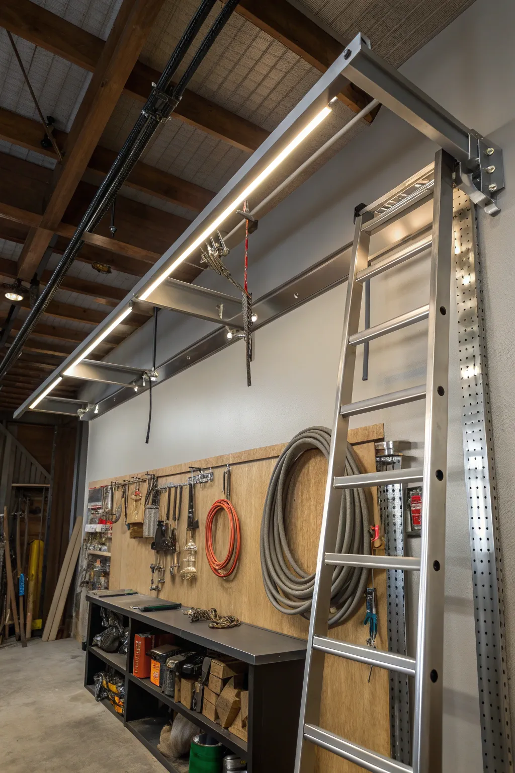 - LED Under Cabinet Lighting: Brighten your workshop and effortlessly illuminate custom shelving with these easy-install LED lights.