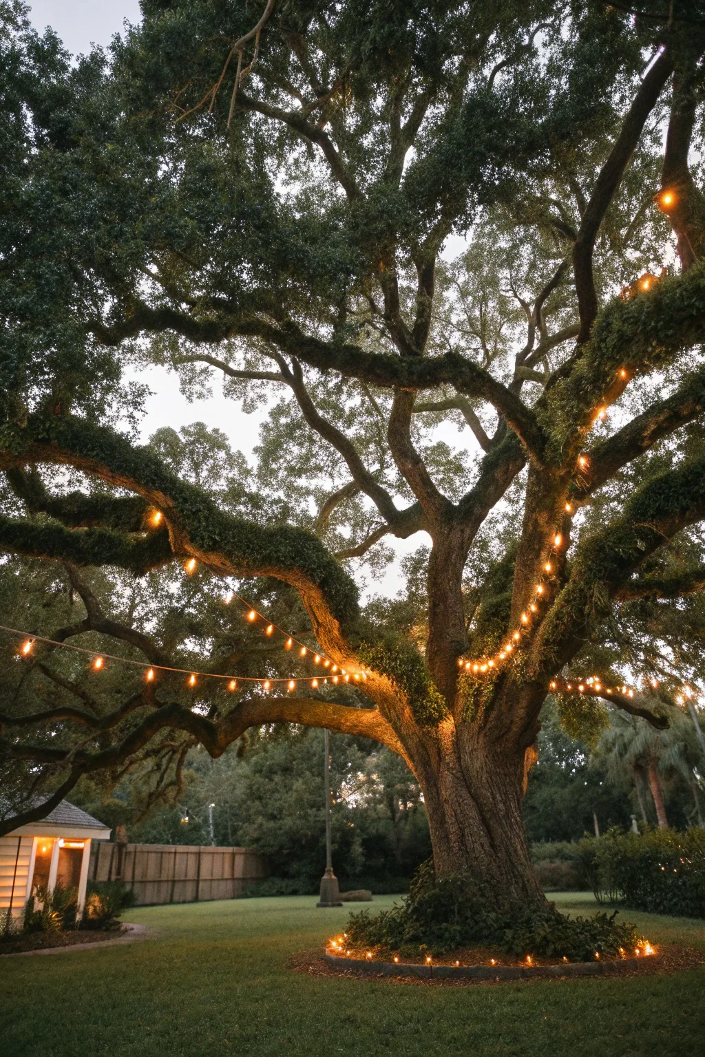 Utilize the natural beauty of your backyard by integrating string lights with trees. This idea was inspired by a camping trip where the trees themselves seemed to glow with light.