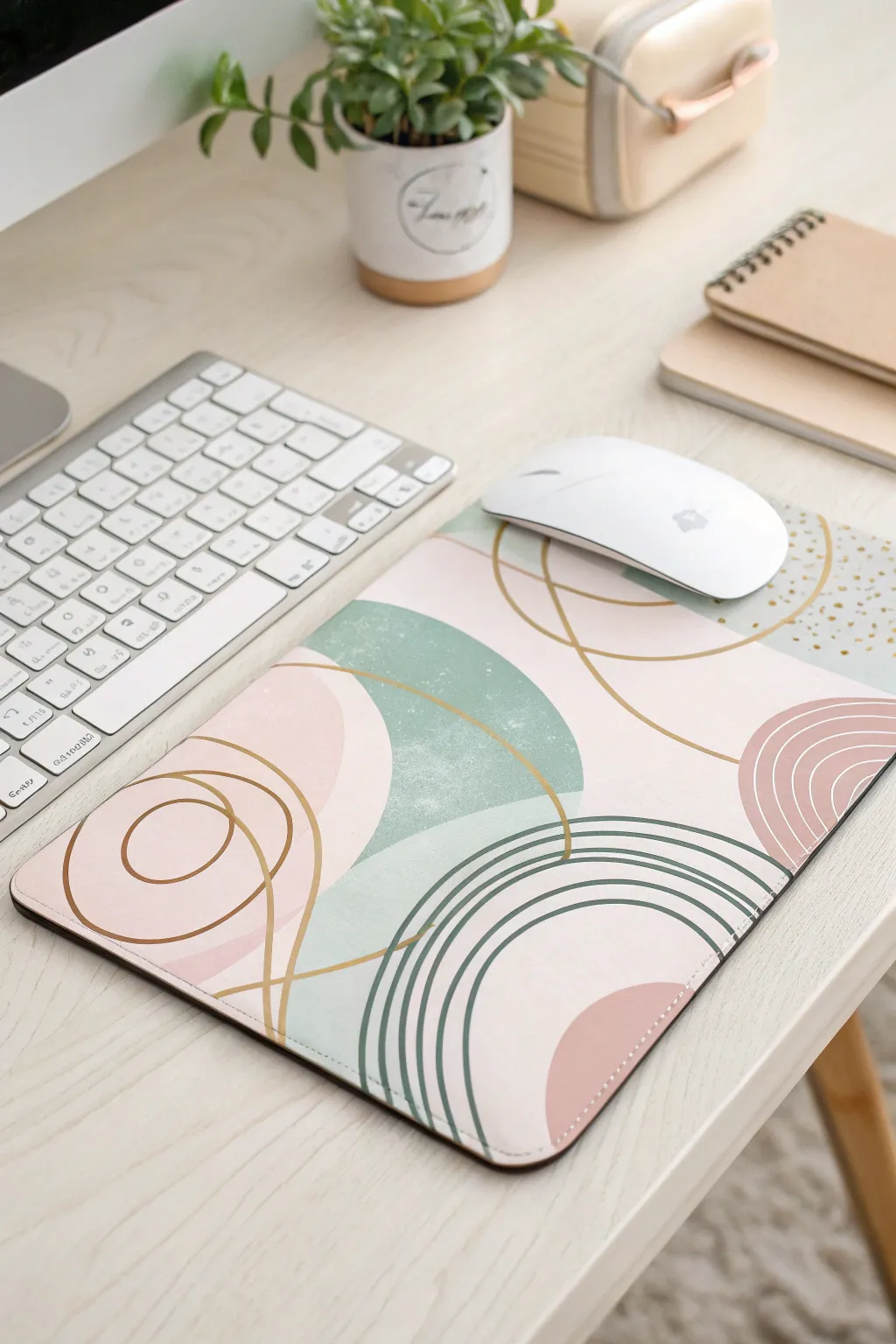 • Pastel Abstract Pattern Mouse Pad: Enhance your workspace with a pastel abstract mouse pad, perfect for subtle artistic flair.