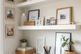 Install floating shelves for a sleek and modern way to display your sunglasses. It’s a straightforward solution that makes a stylish statement.