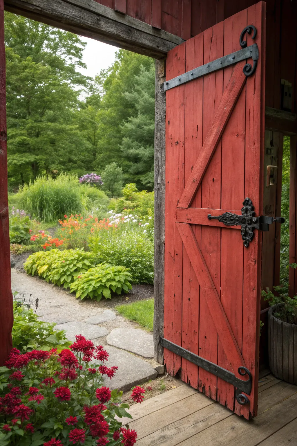Use a barn door as a gateway to your garden or patio. It’s a delightful way to blend indoor comfort with outdoor beauty.