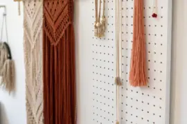 • Wooden Pegboard Kit: Install this stylish wooden pegboard to keep your crafting supplies organized and within reach.