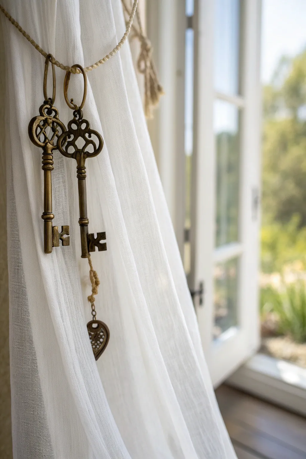 • Sheer Curtain Panels: Refresh your space with elegant sheer panels, perfect for using keys as creative weights.