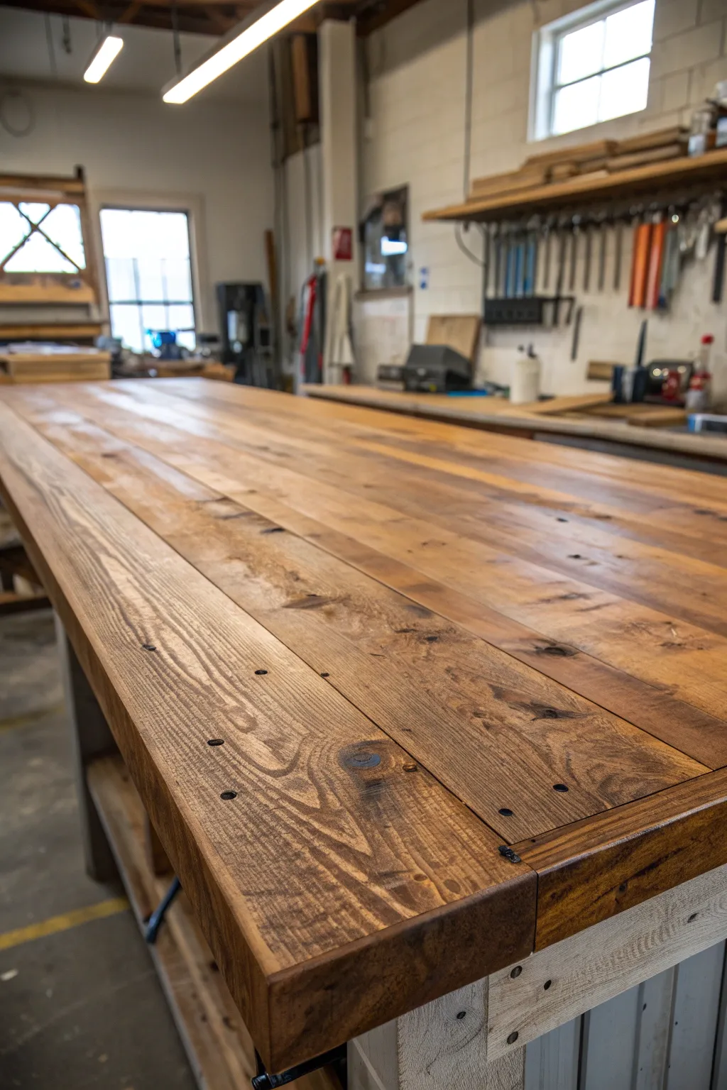 A butcher block countertop isn’t just for kitchens; it’s perfect for workshops too! I love how it withstands heavy use and adds a classic touch to my space.