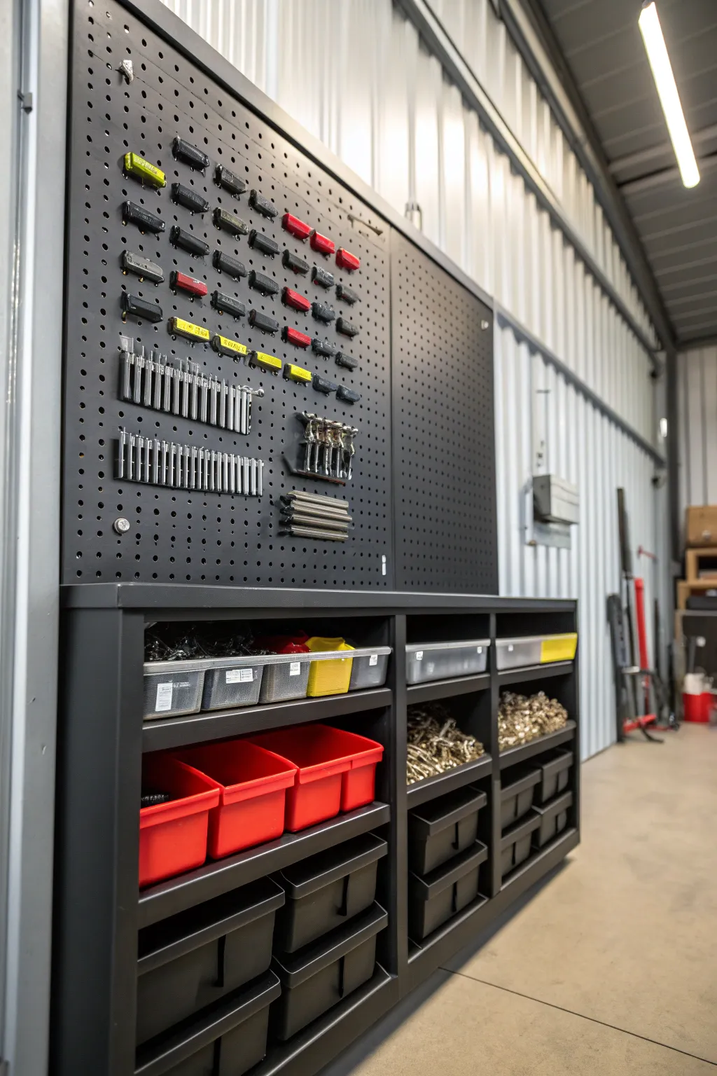 For organizing small parts, pegboard and bin combos are lifesavers. They keep nuts, bolts, and screws sorted and within easy reach in my container.