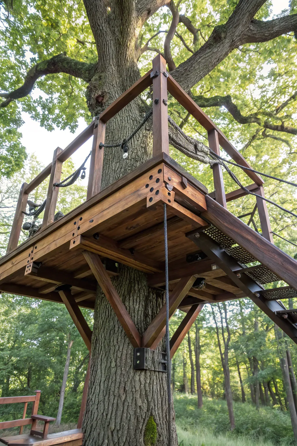 Embrace nature by building your zip line platform around a tree. This not only gives a charming rustic look but also makes use of the natural support a tree offers.